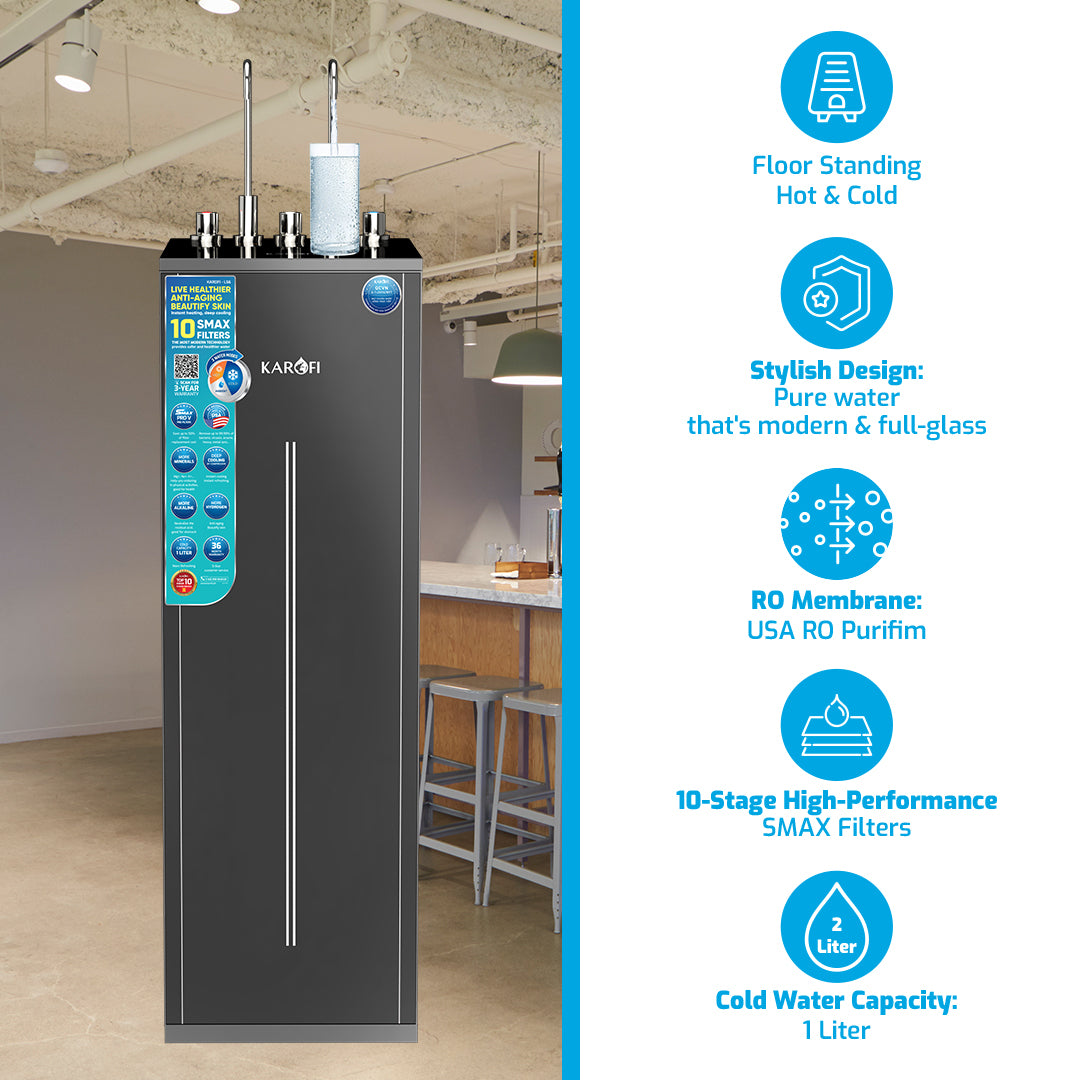 3-in-1 Water Convenience – Delivers hot, cold, and room-temperature RO-purified water in one sleek dispenser.